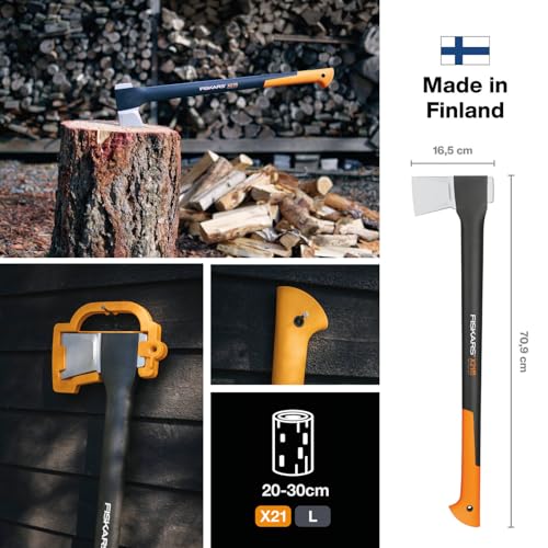 Fiskars Spaltaxt mit Klingen- und Transportschutz, 71 cm, Antihaftbeschichtung, Stahlklinge und Kunststoffstiel, Schwarz/Orange, X21-L, 1,63 kg