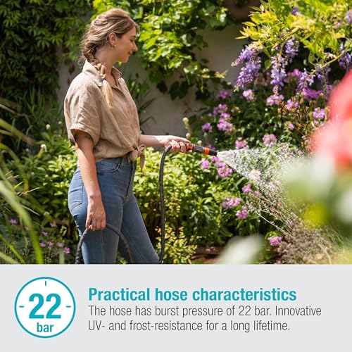 Dank des speziellen Textilgewebes lässt sich der Schlauch mühelos im Garten bewegen, ohne dass er sich verdreht oder knickt. Er hält einem Berstdruck von bis zu 22 bar stand, was ihn ideal für verschiedene Bewässerungsanwendungen macht. Die Kombination aus Leichtigkeit und Flexibilität ermöglicht eine komfortable Handhabung, die die Gartenarbeit erleichtert.