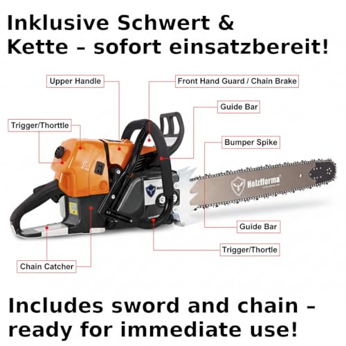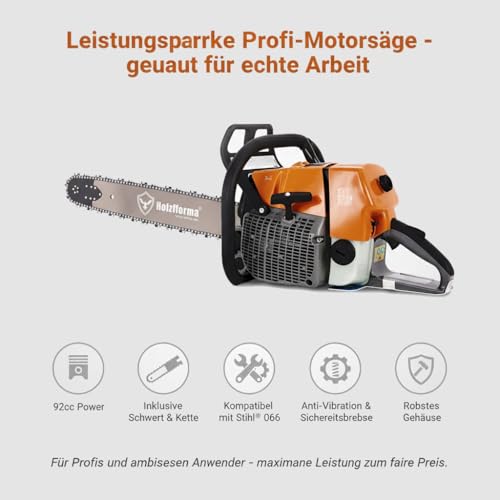 Holzfforma G660 92 cc Benzin-Kettensäge mit Schwert und Kette für professionelle Forst- und Baumfällarbeiten