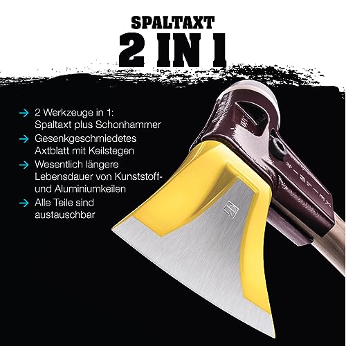 SIMPLEX-Spaltaxt mit Keilstegen und Tempergussgehäuse sowie Hickorystiel für vielseitige Anwendungen