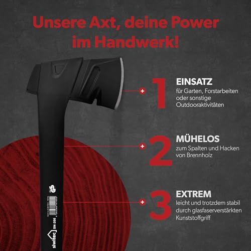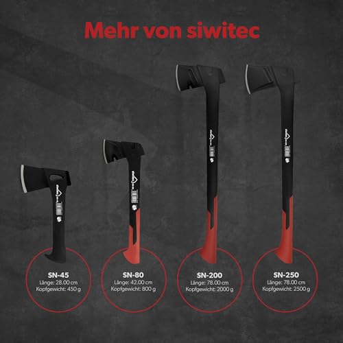 siwitec Axt SN-200 mit Klingenschutz, Spaltaxt mit 2000 Gramm Kopfgewicht und C45 Carbon Klinge