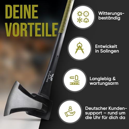 Die VULPAXE Spaltaxt ist sowohl für den professionellen Einsatz als auch für Hobbygärtner geeignet. Sie eignet sich hervorragend für das Spalten von Brennholz und kann auch bei anderen Holzarbeiten eingesetzt werden. Ihre robuste Bauweise und das durchdachte Design machen sie zu einem unverzichtbaren Werkzeug für jeden, der regelmäßig mit Holz arbeitet.