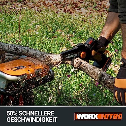 WORX WG325E.9 Nitro Mini Akku-Kettensäge 20V, Einhand Ast-Säge mit Brushless Motor und 12cm Schwertlänge, leicht und kompakt, automatische Kettenschmierung ohne Akku und Ladegerät